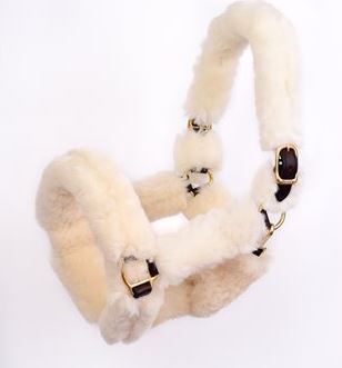 Have your horse arrive in style! The Sheepskin Shipping Halter is completely covered with stitched-on fleecy, natural sheepskin for your horse's complete comfort. Adding to the luxuriousness of this halter, the sheepskin boasts soft, hand rubbed edges. Expertly crafted in America using top quality premium leather and solid brass (Havana) hardware, each cut, stitch and finishing touch is completed by the hands of a small number of local Amish leather workers. To make this plush halter even better, we incorporated a double-buckle crown and a convenient snap at the throat. Simply the best, for the best!